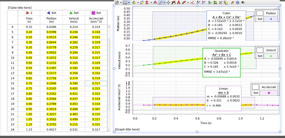 I am doing a physics lab where we are supposed to calculate air resistance and find the impacts of velocity and cross sectional area on air resistance. For the experiment, we rolled a cart down a ramp and measured data using Pasco Capstone software. When rolling the cart down the ramp, we increased cross sectional area of the cart to see its impact on air resistance. We also did a different trial where we increased velocity by increasing the angle of the ramp to see its impact on air resistance. In the software, we created d-t, v-t, and a-t graphs and fitted them with equations based on the lines observed (linear for a-t, quadratic for v-t, and cubic for d-t). I know increasing the cross sectional area and velocity both increase air resistance and I have all the data, but I'm not sure where to go from here/what calculations to do in order to prove this. Any tips/explanations/sample calculations would be appreciated. Thank you!