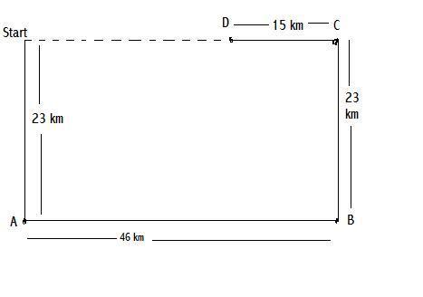 Total time is ?? Assuming that they don't surpass the speed limit, they are going 80km/h. Knowing that, and that they go a total of 107 km... (46+23+23+15) ... they will take 1. 3375h. So...then wouldn't it be 31/1.3375 = 23.1 km/h [E] (East because displacement is only eastward)