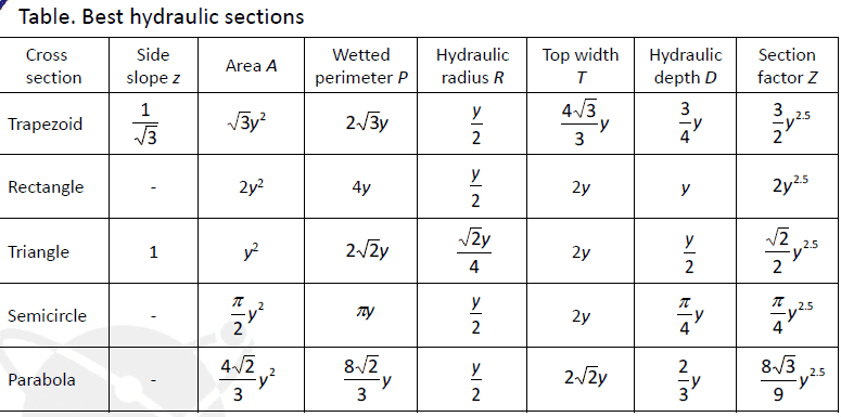 I assume the total flow rate of composite channel is 6.5(m^3/s) .. so From the table , i gt z = 1 / sqrt(3) , A = (sqrt(3) + 2 ) (y^2) = 3.73(y^2)