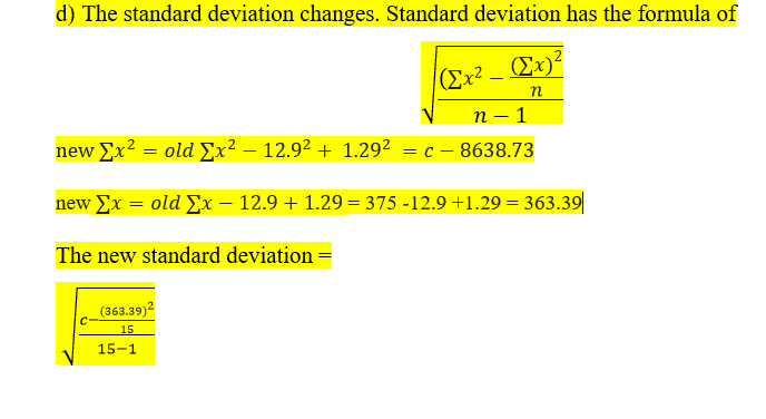 the new ∑(x^2 ) = old ∑(x^2 ) - (12.9^2) + (1.29^2) ...