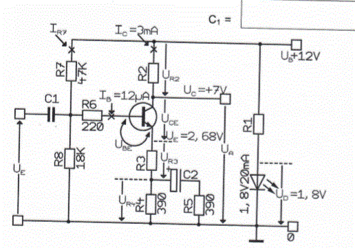 The discussion revolves around calculating component values, specifically the capacitor C1, in a low-frequency common emitter (CE) amplifier circuit. Participants explore the implications of input impedance and current gain in their calculations, focusing on both AC and DC parameters.