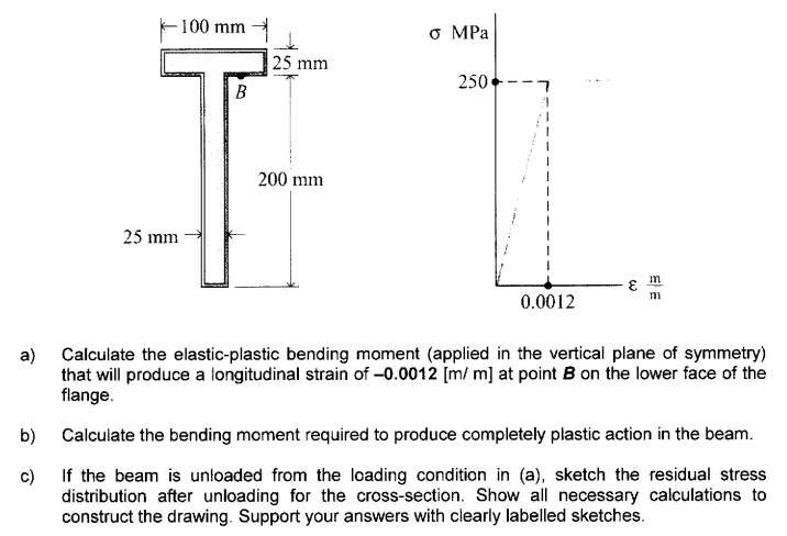 I am preparing for a strength of materials exam and I can't seem to solve this problem. I am unsure if the section below the neutral axis is fully plastic before the edge of the flange experiences the yield stress. Could anyone please provide an explanation or methodology into solving this problem.