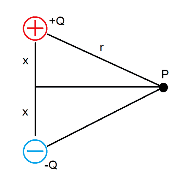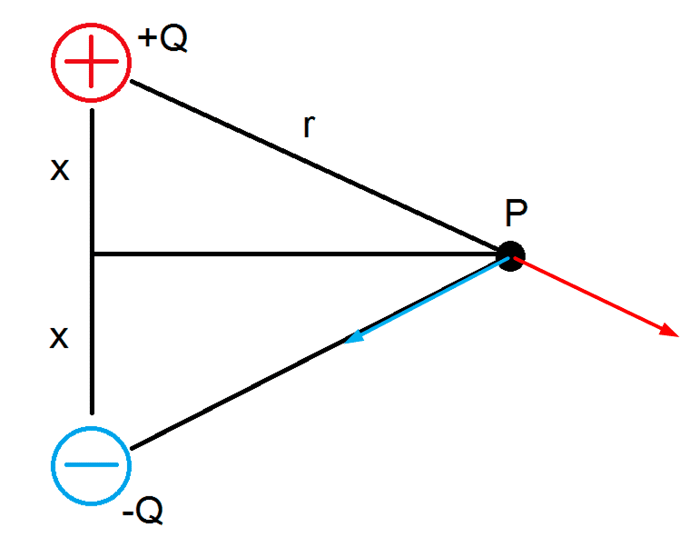 The discussion revolves around calculating the electric field at a point from an electric dipole. Participants are examining the accuracy of the equations used and the vector nature of the electric field.
