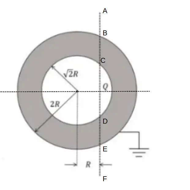 Well firstly as the outer cylinder is grounded, it must have a zero potential. My first doubt is that is it like a capacitor? i.e, will there be any field outside the outer cylinder? If no then how so?