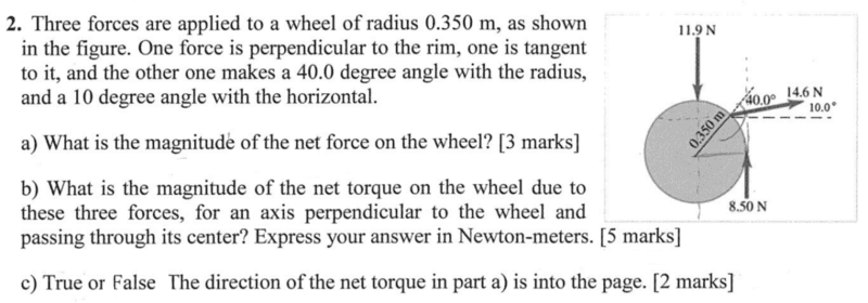a) What is the magnitude of the net force on the wheel? [3 marks]