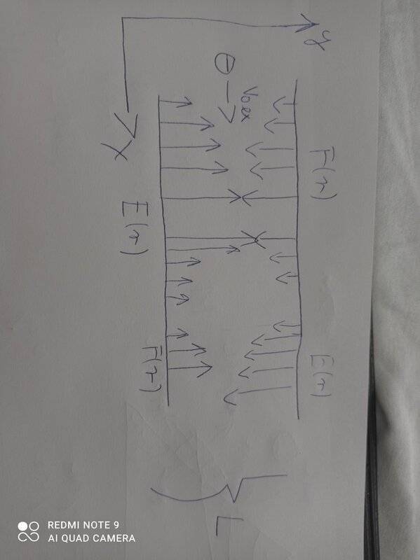 Participants are navigating potential misunderstandings regarding the directionality of the electric field and the force, as well as the definitions of variables such as displacement and the boundaries of the system.
