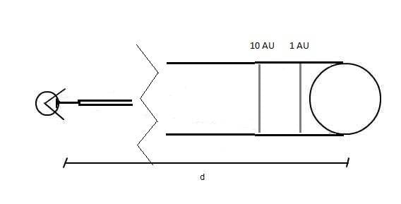 We can imagine that the reduction in area of the star is caused by a substraction of the circular area of the planet that is in front of the star, since the obscuring is caused by the planet’s circle area and not its total spherical area from our perspective. Of course the distance of the planet from the star must not be too large otherwise we’d be overestimating the radius of the planet.