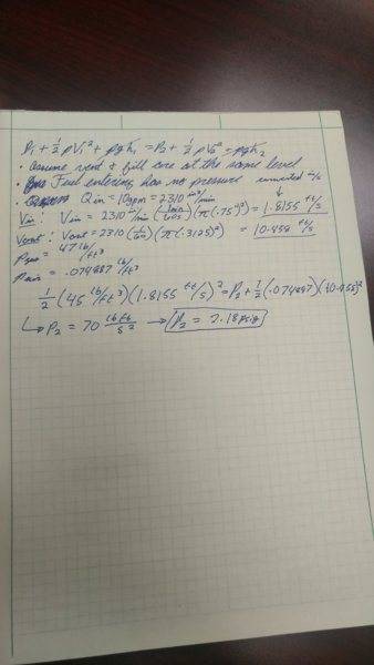 I have to determine the amount of pressure created when air is displaced buy gasoline flowing into a tank.