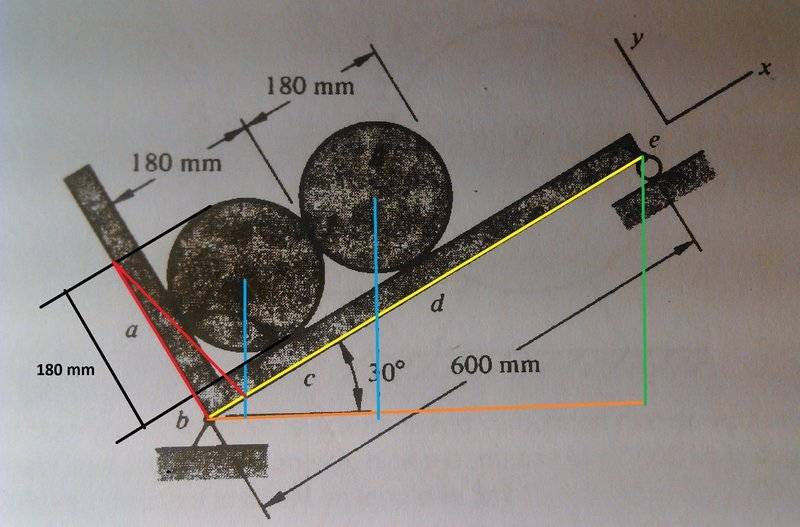 The discussion revolves around calculating the reaction forces acting on two cylinders resting on an L profile, with a focus on understanding the forces involved and their interactions. The problem involves concepts from statics and mechanics, particularly force balance and moments.
