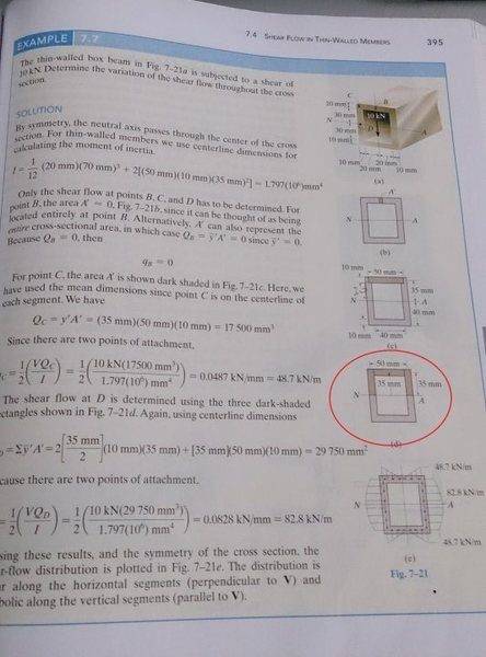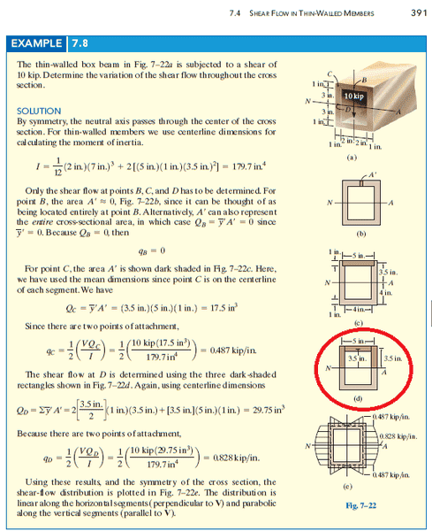 The discussion revolves around calculating shear flow in a hollow beam, specifically addressing discrepancies in the calculated values of Q based on different methods of dimensioning the beam. Participants explore various approaches to breaking down the beam into sections to determine the correct shear flow.