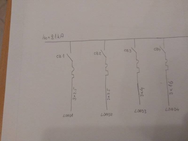 1.) If I have all impedances (sources, transformer, cables) I will be able to calculate short circuit current of each circuit(1,2,3,4). Isc of each circuit is different while the cross section of cables are different, too. But, how to get total Isc on busbar, in attachment it's 9.1kA?