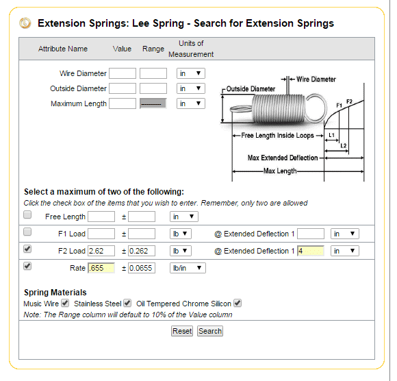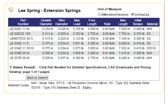 Most off the shelf springs will use inches for the displacement dimension if using USC. If you want to work in feet, then plan to calculate K in lb/ft and later convert this to lb/in.