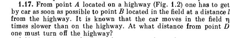 The discussion revolves around calculating the distance to turn off a highway, involving concepts of speed and time in different contexts. Participants are exploring the implications of a variable η, which represents a speed ratio, and how it affects the overall calculations related to distance and time.