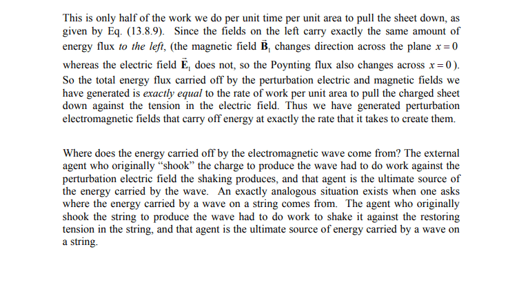 Above they use the definition work energy theorem in vacuum to get to (8.12). Since it is in vacuum I would guess that one could use the equations for B and E field from EM-waves so that magnitude poynting vector due to orthogonality of B and E field of EM-waves this becomes: