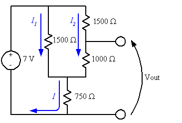Replacing the voltage source I see that the 1500(one connected in the separate branch) and 1000 ohm resistors have no current flowing through them. That leaves just the 1500 and 750 in series with the voltage source. So the voltage across the terminals would equal to the voltage in the 750 ohm resistor which works out to be 2.3V = Vth