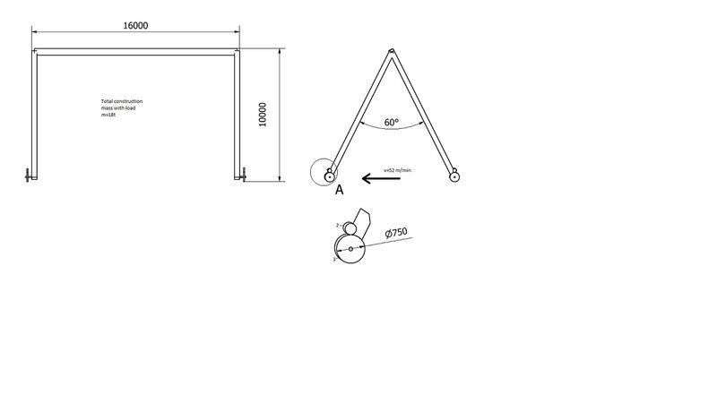 I attached simple drawing of a crane. i want to calculate torque needed for each one of the four wheels so i could try choose proper electromotors and reducers.