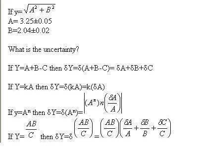 Finally, since A= 3.25+/- 0.05, the largest it can be is 3.25+ 0.05= 3.30 and the smallest it can be is 3.25- 0.05= 3.20. Similarly, largest B can be is 2.06 and the smallest is 2.04. What are the largest and smallest that \sqrt{A^2+ B^2} can be?