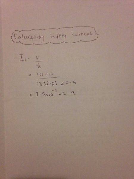 I then calculated the supply current by just simply doing the supply voltage divided by the total impedance.