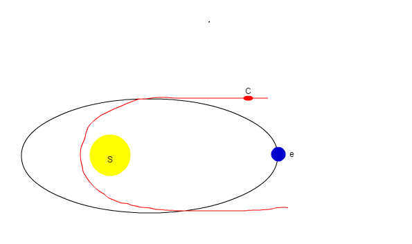 The discussion revolves around a comet's parabolic orbit around the Sun, specifically focusing on the distance from the Sun to the comet's perigee, initially stated as 58 km but later corrected to 58 million kilometers. Participants are tasked with determining the time required for the comet to transit into Earth's orbit.