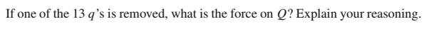- Participants discuss graphical vector addition of forces and the symmetry of the charge arrangement. Questions arise about the implications of removing a charge and how that affects the net force on the test charge. Some suggest considering the situation from the perspective of different charge placements.