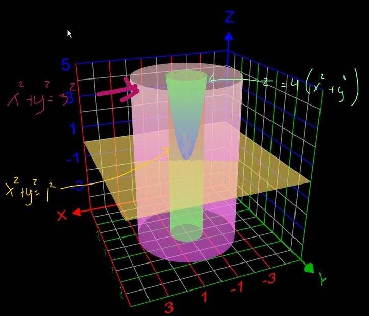 The discussion revolves around a multi-integration problem in calculus, specifically focusing on finding the volume between two concentric cylinders and a paraboloid defined by the equation z=4(x²+y²). Participants are exploring the appropriate integration methods to apply in this context.