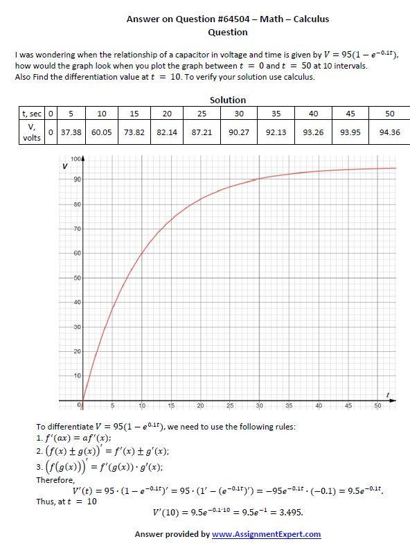 3.) If in response to t = 10, -> V (t) = 3.495 and in the table for t = 10 there is value: 60.05 V?