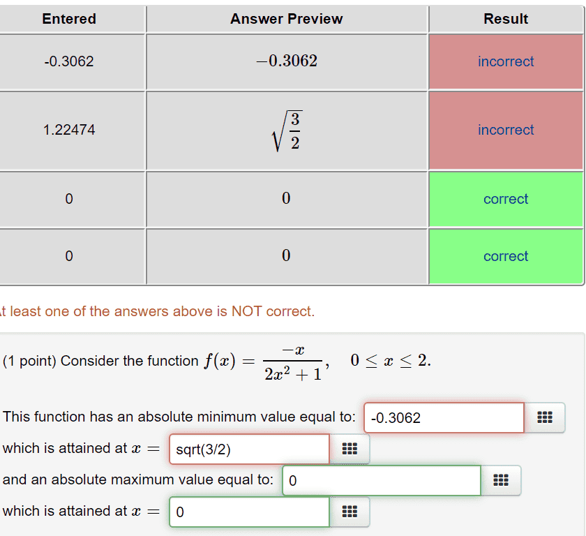Calculus problem: Questions about the function f (x) = - x / (2x^2 + 1)