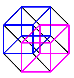 So now I am wondering, since I would think for sure that someone has projected that 4-D hypercube onto a 3-D surface, like onto a 3-D TV screen, what does it look like when projected onto 3-D, does it help to visualize the 5th dimension, whether such dimension is physically curled up ultra small or mathematically infinite in extent? I have a 3-D TV now, and maybe some channel like Discovery Channel can show me it, or has anyone seen such a projection? I mean like you know when you project a 3-D cube onto a 2-D surface, you can quite clearly see the cube isometrically and visualize 3-D on a 2-D surface, so would the same visuaization of 4-D projection onto 3-D be just as clear, unlocking the secret of the 'hidden' dimension, or is this just wishful thinking?? In any case, I think it would be much better than the 4-D projection onto 2-D.