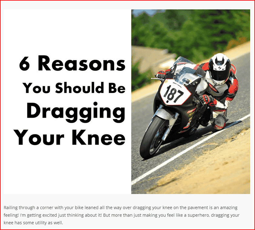 So the idea is that, if the rider puts his inside knee down on the ground while in the turn, that corresponding amount of weight is removed from the apparent centrifugal force. So there's a little less centrifugal force so that allow the rider to go a little bit faster then when his knee was not sliding on the ground.