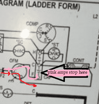 Furthermore, I used an amp clamp to check the amperage draw on the common wire of my outdoor fan motor. The Full Load Amps on the nameplate of my outdoor unit is .77 amps. This means that the LRA should be around 3.85 amps. When I first turned the setting on the thermostat from "Off" to "Heat Mode", the amperage stayed at zero amps for a few minutes. Then, after a few minutes, the amperage on the common wire of the outdoor fan motor went up to 2.7 amps for about a second. Then the amperage gradually dropped down to zero amps over the next 30 seconds or so. Then the amperage just stayed at zero amps for the next 5 minutes or so until I removed the amp clamp from the common wire.