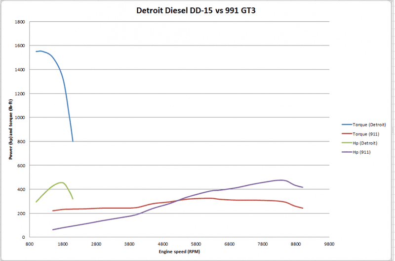 In my example, engine C is a high-revving engine with a strong lower power band and engine A is a low-revving engine with a weaker lower power band. In real life, by design constraints, it is usually the other way around. But it is technically possible to build two such engines.