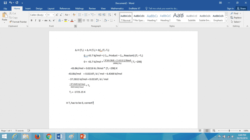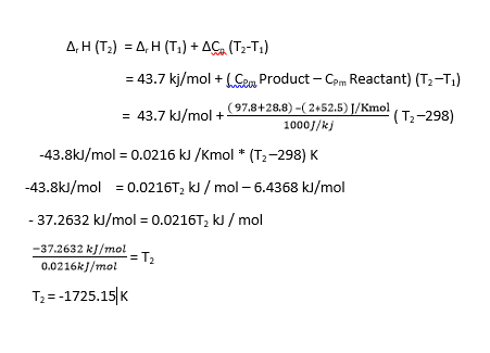 - One participant calculates ∆rH for the reaction and seeks to determine a temperature, TH, where the reaction is neither endothermic nor exothermic.