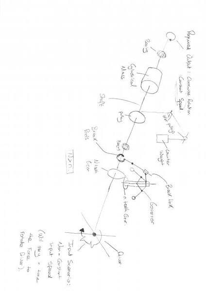Here's the problem. So basically I have an input shaft which has non constant Forces acting on it. Thus the input shaft speed varies with time. What I need is an output shaft that is speed controlled i.e. Speed constant with time. To add to it on the output shaft I have a large mass attached to the shaft. I tried thinking out the problem and would like to share it with you guys, maybe you guide me in the right direction. So I have drawn a simple sketch showing a way to solve this problem. Please see the attached. Basically as already explained I have an input cross which is subjected to non constant forces causing the input shaft to vary in speed. First of all to counteract the effect of inertia coming from the cylindrical mass I have added a counterweight and a pulley. The direction of rotation is the same as the input shaft. Since the shaft is going to start from stationary I wanted to achieve the constant speed as quickly as possible thus the introduction on the counterweight.
