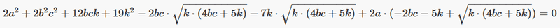 The discussion revolves around a mathematical problem involving a quartic equation in terms of the variable k, with parameters a, b, and c, all of which are positive and satisfy the condition a > bc. The original poster seeks to express k as a function of these parameters.