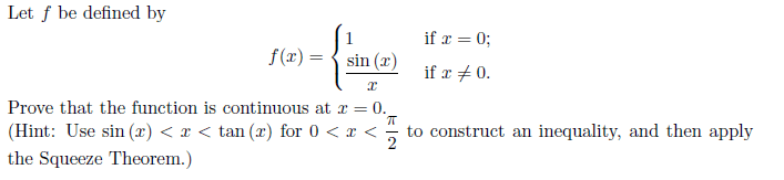 The discussion centers on the mathematical approach to proving continuity at x = 0 by dividing by sin x. Participants suggest that utilizing the hint provided in the problem, which involves dividing by sin x, is a more appropriate method. This technique aligns with established mathematical principles and can effectively demonstrate the continuity of functions at the specified point.