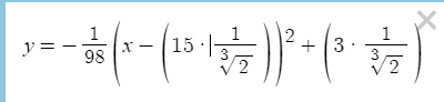 3. y=-1/98x^2+15/49x+69/98; 15<x<22