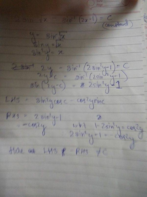 2 arcsin(rt(x) +C= arcsin(2x-1) +c