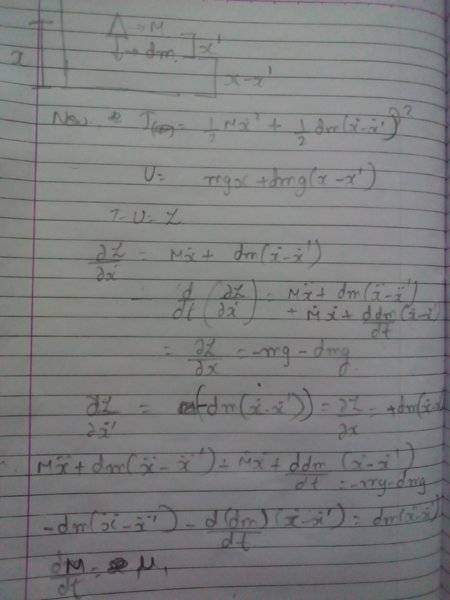 - The original poster attempts to apply the Lagrangian method but encounters issues with the resulting equations, suggesting a need to clarify the definitions and assumptions related to rocket motion. Participants raise questions about the meaning of variables, particularly the term "dm," and its implications in the context of the problem.