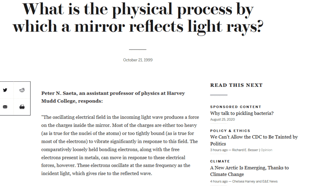 - A participant notes that the wavelength of light is shorter than that of RF signals, which may affect the applicability of certain RF concepts to light reflection.