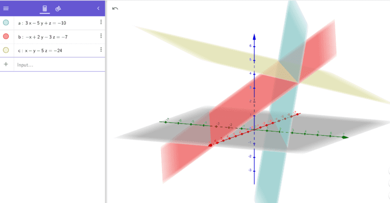 (i) So I started off with a system of equations in three variables. In other words, I am given three planes ##A,B,C## and these are represented in three-dimensional space.