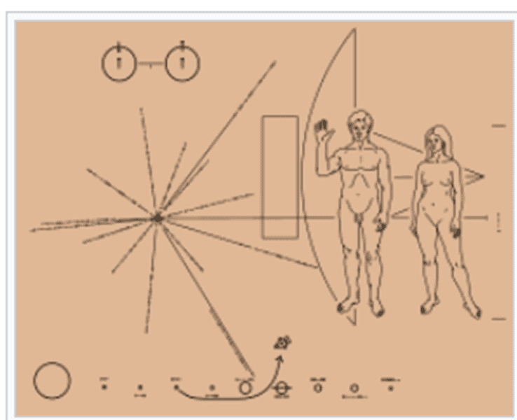From above, "The golden plaque was the brainchild of Carl Sagan who wanted any alien civilization who might encounter the craft to know who made it and how to contact them."