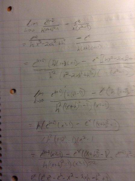 lim_(h->0^-) (e^(x+h)/((x+h)^2-1)-e^(x+h)/(x^2-1))/h = -(2 e^x x)/(x^2-1)^2