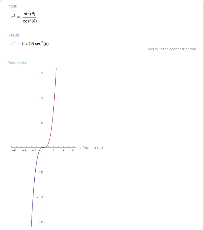 The polar form of the equation $y=x^3$ can be expressed as $r=\pm\sqrt{\frac{\sin\left({x}\right)}{\cos^3\left({x}\right)}}$. Users have reported difficulties in plotting this equation using Wolfram Alpha (W|A). The discussion emphasizes the need for specific input formats when utilizing W|A for polar plots to achieve accurate visual representations.