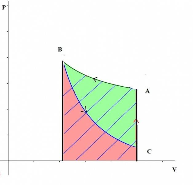 For example take the cycle in the picture, made of two adiabatics and one isochoric.