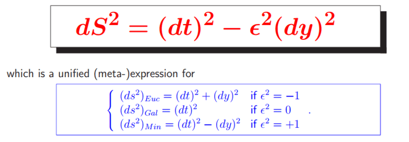 - One can say that the “metrics” of space and time in Galilean relativity are different. But why? In SR we homogenize time and space units by multiplying time by the invariant speed of light c. There is no invariant speed in the Galilean framework. Anyhow, the author of the video claims in some comments that he can multiply space units by any arbitrary speed, preferably unitary to keep the numerical value of the time units, like c = 1 m/s. I am convinced that this is unacceptable but it would be interesting to specify why.