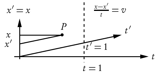 For Galilean relativity, with its Galilean circle ( the "t=1" line),