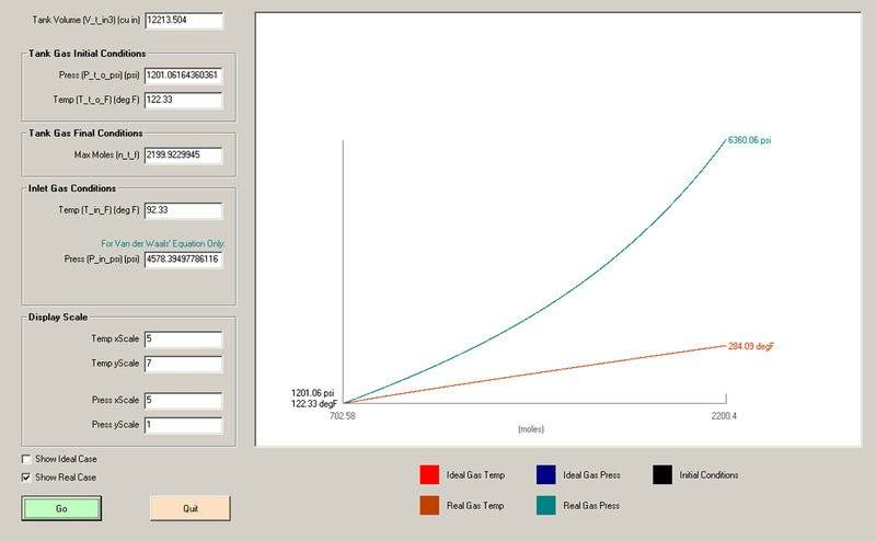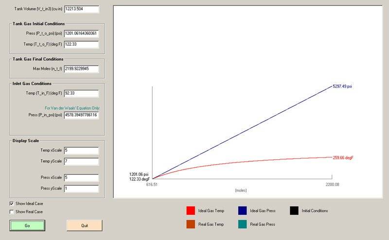 Participants highlight limitations in their understanding of thermodynamic principles, particularly regarding the open-system version of the first law and the implications of specific volume on internal energy for real gases. There is also uncertainty about the time required for thorough mixing of gases in the tank.