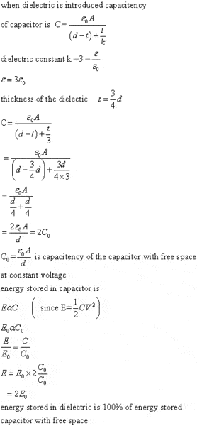a dielectric of dielectric constant 3 fills three fourth of the space between the plates of a parallel plate capacitor. What percentage of the energy is stored in the dielectric.