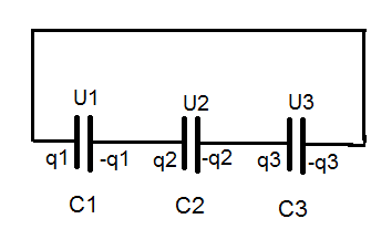 I wonder if the voltage across the resisors will be equal one to another since there'll be no current flowing after they achieve equilibrium condition. So, I think it is V_1 = V_2 = V_3 and q1+q2+q3 = q_total where q_total is 200(C1+C2+C3) because they have all been charged with 200V source.But, I remember in determining the substitute capacitor for capacitors in series, the charges on each resistor is equal to one another which means q_1 = q_2 = q_3 and V_1+V_2+V_3 = 200V (maybe?)