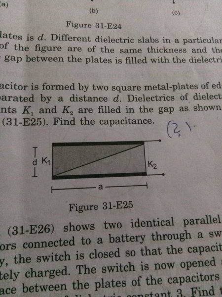 The discussion revolves around calculating the capacitance of a capacitor with square plates, incorporating two different dielectrics inserted diagonally. The participants explore the implications of varying the proportions of the dielectrics and the integration required to derive the capacitance expression.